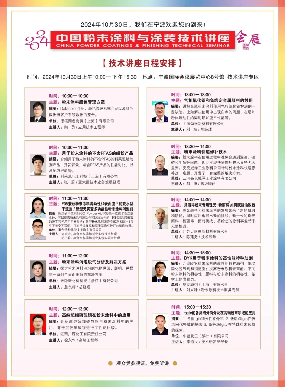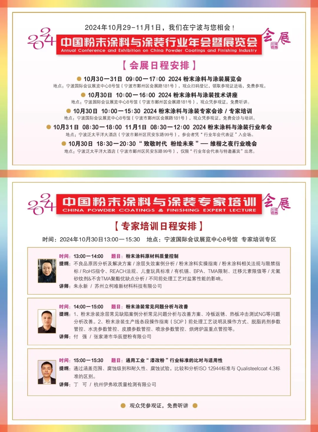 同期,主辦方安排了中國粉末深料與涂裝專家培訓(xùn)會,將圍繞粉末涂料原材料質(zhì)量控制、粉末涂裝常見問題等問題進(jìn)行專業(yè)的技術(shù)交流與培訓(xùn)。具體培訓(xùn)內(nèi)容如下: