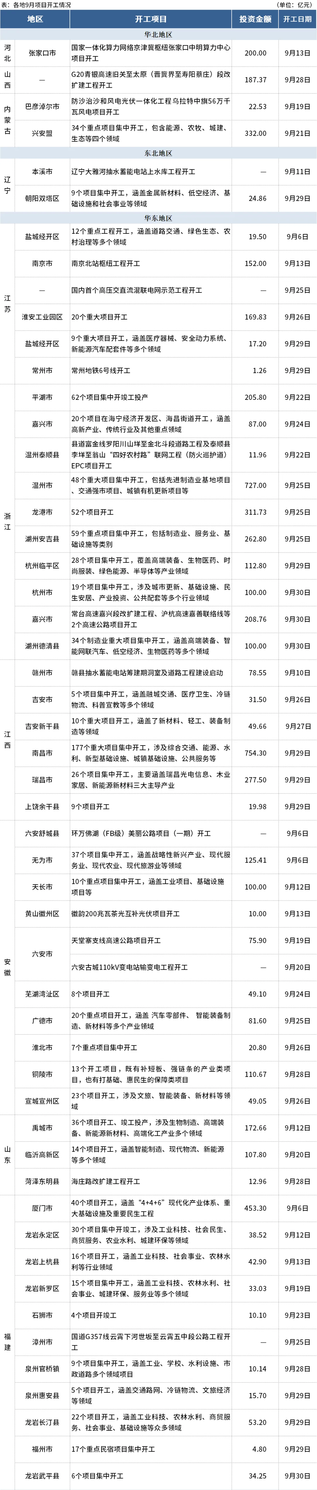 今年1-8月,全國基礎設施投資同比增長4.4%。其中,水利管理業投資增長32.6%,航空運輸業投資增長20.3%,鐵路運輸業投資增長16.1%。2024年9月,全國各地共開工4247個項目,總投資額約22331.55億元,前9月合計總投資約25.80萬億元。根據專項債領先基建投資的關系,預計四季度基建增速有望回升。