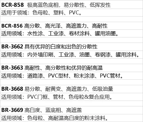 金紅石硫酸法鈦白粉,具有藍(lán)色相和高光澤、易分散、高遮蓋力和低吸油量等特征,且具有優(yōu)異的白度、出色的分散性和耐溫率,被廣泛應(yīng)用于內(nèi)外墻印刷、工業(yè)漆、通用型粉末涂料、PVC門框管材、聚烯烴等行業(yè)領(lǐng)域。