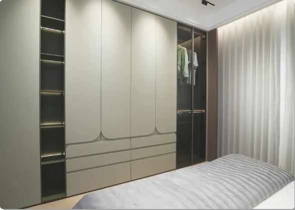 定制衣柜采用溫潤弧形免拉手設(shè)計