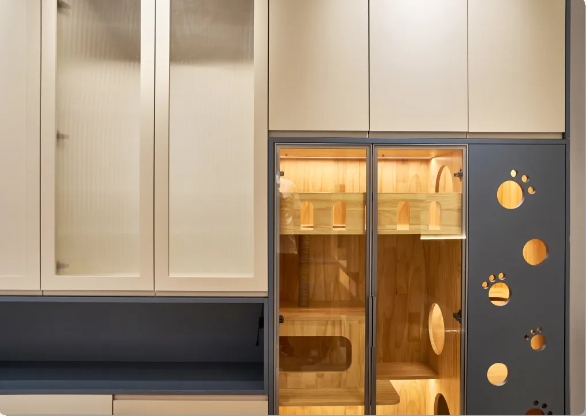 木飾面配鋁合金極簡門、烤漆奶油風造型門