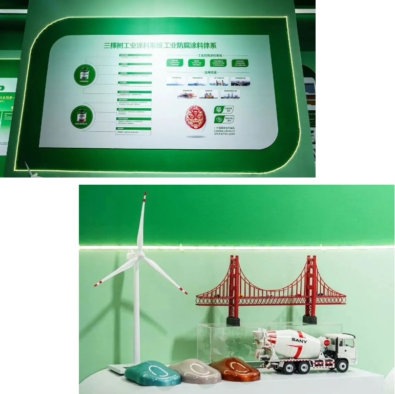 一直以來,三棵樹始終致力于技術(shù)創(chuàng)新與產(chǎn)品研發(fā),在多個(gè)領(lǐng)域獲得深厚的積累與不俗的成果。現(xiàn)場,三棵樹展示了包含建筑涂料、工業(yè)涂料、基輔材、保溫、防水、工程板材、地坪的“七位一體”產(chǎn)品體系,成為本次城博會的一大亮點(diǎn)。