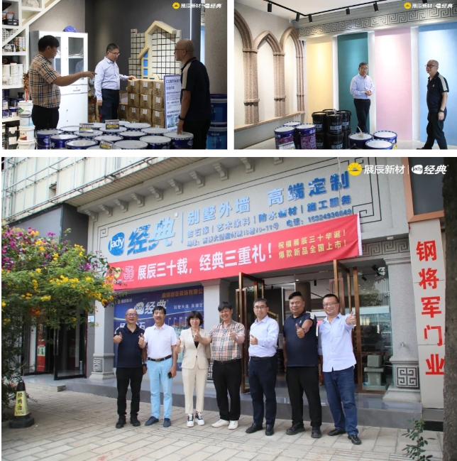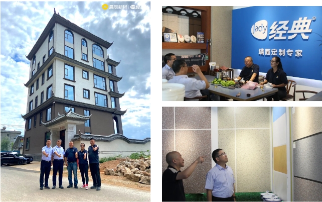 24日上午,陳董一行走訪曲靖市場,參觀了經典沉浸式體驗涂裝旗艦店,隨后深入鄉鎮市場走訪了分銷渠道,與客戶進行了深度交流,并考察了經典美麗鄉村仿石漆項目。