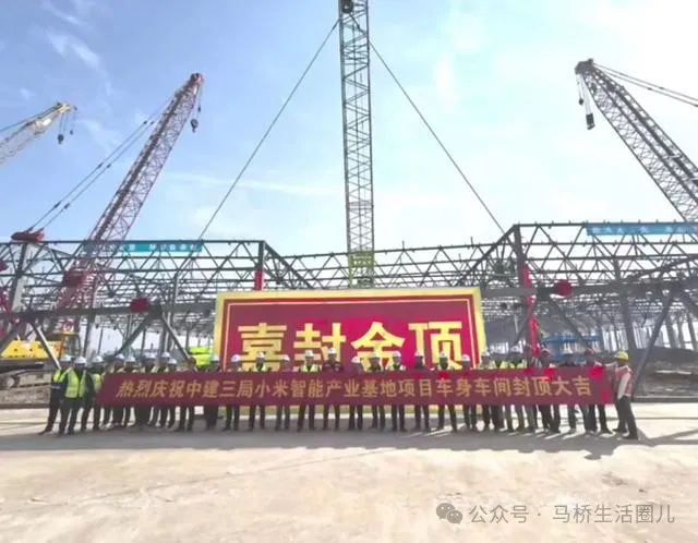 近日,小米汽車工廠二期(小米智能產業基地項目)車身車間封頂。小米汽車工廠二期位于目前北京亦莊小米汽車工廠東側,總建筑面積約40萬平方米,地上39萬平方米、地下8503平方米。小米在7月下旬競得該地塊,僅用時2個月工廠就實現車間結構封頂。
