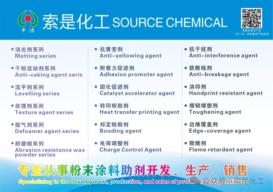 索是化工的5000噸/年粉末涂料用助劑項(xiàng)目,不僅僅是產(chǎn)能的擴(kuò)充,更是技術(shù)創(chuàng)新與市場(chǎng)拓展的雙向驅(qū)動(dòng)。它不僅提升了企業(yè)自身的綜合實(shí)力,還填補(bǔ)了國(guó)內(nèi)市場(chǎng)空白,為粉末涂料行業(yè)的持續(xù)健康發(fā)展提供了堅(jiān)實(shí)的基石。站在綠色征程的新起點(diǎn),索是化工正以嶄新的面貌,迎接每一位志同道合者的加入。無(wú)論是合作,還是挑戰(zhàn),都將秉持“追求助劑合理運(yùn)用,挑戰(zhàn)粉末涂料難點(diǎn)”的初心,與行業(yè)同仁一道,共創(chuàng)粉末涂料的美好明天。