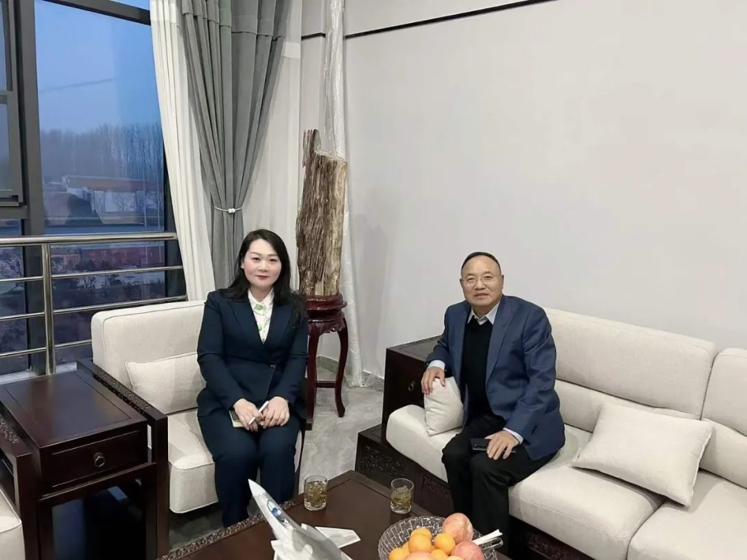 涂料采購網(wǎng)江雪(左)與青山環(huán)保董事長朱新峰(右)探討水漆行情