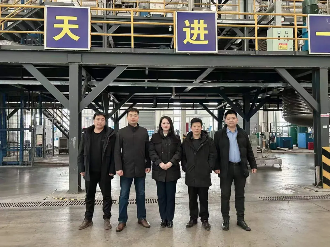 涂料采購網(wǎng)江雪(中)到訪青山環(huán)保并參觀車間、庫房、研發(fā)中心等