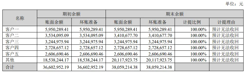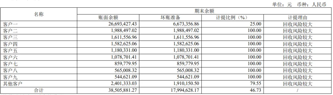 東來技術中報顯示,多位客戶100%計提的壞賬回收風險較大,預計無法收回的壞賬1700多萬。