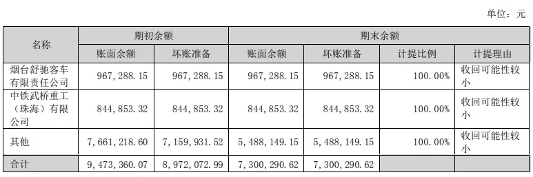 渝三峽中報顯示,某客車和某重工企業計提的700多萬壞賬收回可能性小。