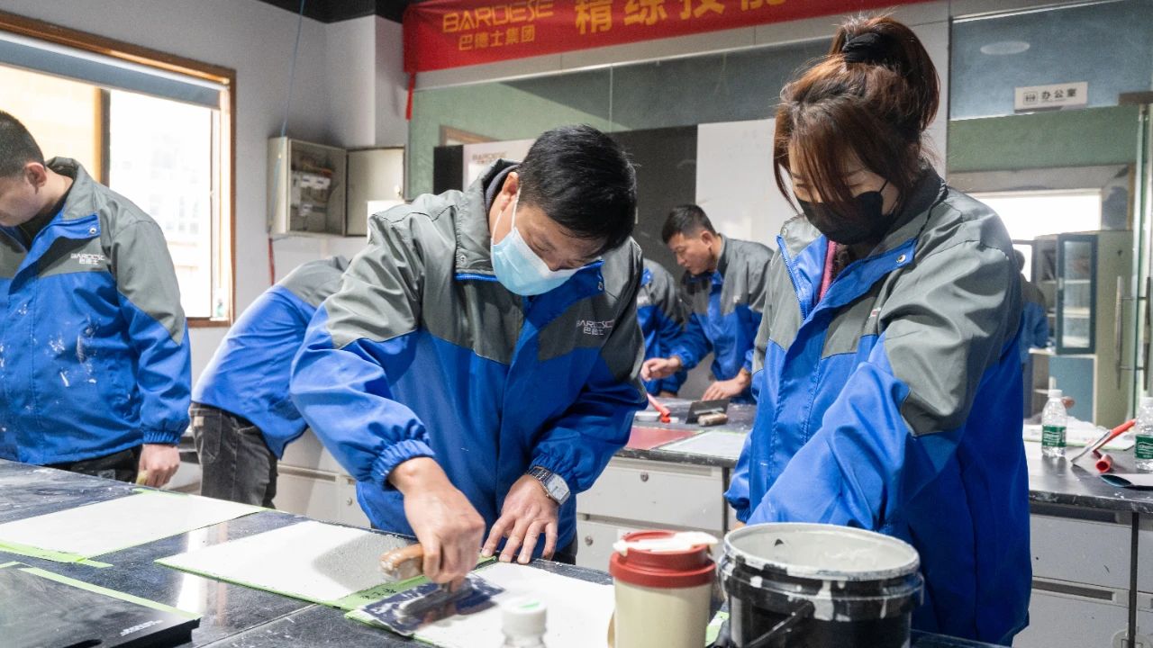 巴德士董事長方學平指出,行業發展已然進入“效果交付”時代,施工人才非常關鍵。誰掌握了大批優秀的施工人才,并建立了穩定的人才培訓體系,誰就掌握了核心競爭力。為此,開工伊始,公司便緊鑼密鼓地組織藝術漆、仿石漆、地坪漆及防水基材一線團隊回來培訓,為他們提供實時的技能加油站。