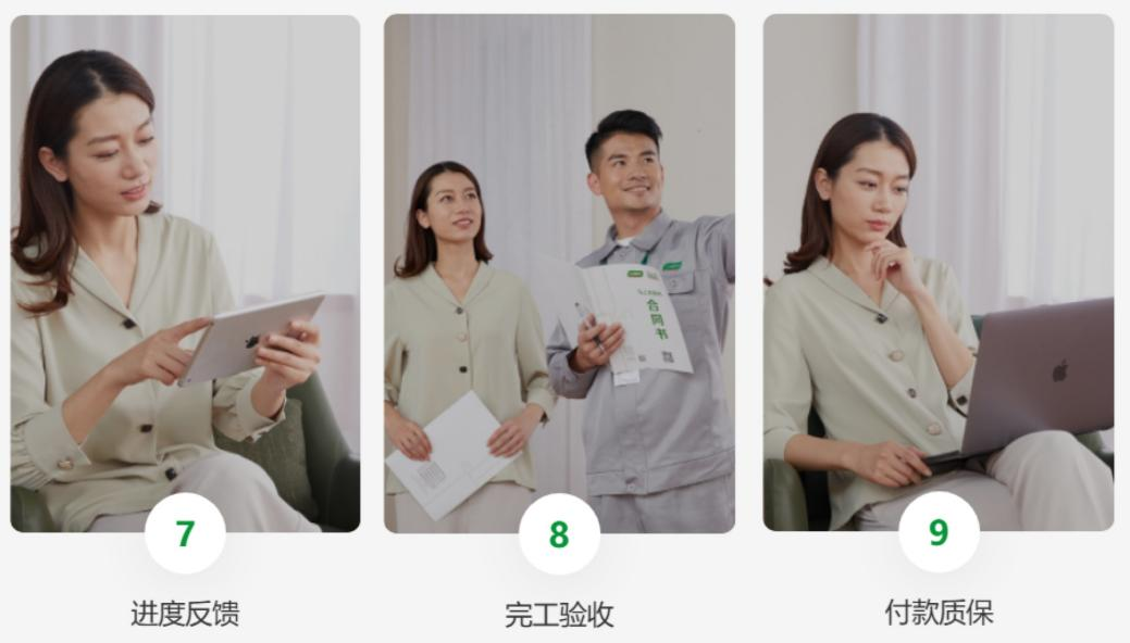 施工過(guò)程中,專業(yè)人員持證上崗,遵循標(biāo)準(zhǔn)化家居定制解決方案,確保每一個(gè)施工細(xì)節(jié),非施工區(qū)域還會(huì)進(jìn)行全方位遮蔽保護(hù)。同時(shí),APP、云管家、小程序三大專業(yè)系統(tǒng)實(shí)時(shí)監(jiān)管,讓您隨時(shí)了解施工進(jìn)度。三棵樹(shù)馬上住煥新一站式服務(wù)有著嚴(yán)格的服務(wù)承諾:不使用不環(huán)保材料、不減工序、不增項(xiàng)目……完工后,三棵樹(shù)安排管家式協(xié)同驗(yàn)收,6大節(jié)點(diǎn)28項(xiàng)驗(yàn)收指標(biāo),還有安心質(zhì)保365天,1年內(nèi)免費(fèi)上門售后,讓每一位用戶都能享受到361°滿意服務(wù)。