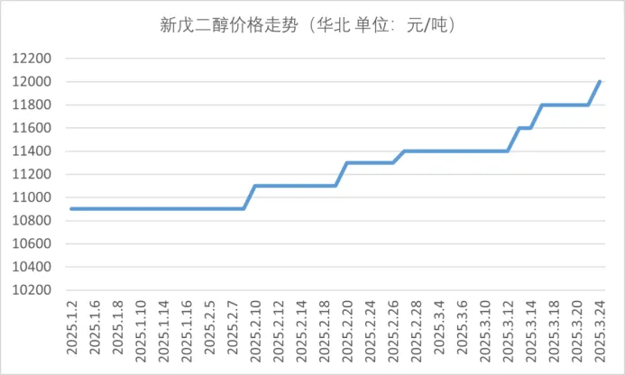聚酯樹脂行業連漲兩輪,原材料的暴漲無疑是主要驅動因素。今年以來,粉末涂料上游核心原料新戊二醇市場持續高燒,萬華化學報價已攀升至12000-12200元/噸,較年初漲幅超10%,較去年同期增長24%。這波“淡季不淡”的行情,源于全球裝置集中檢修與下游剛性需求的雙重驅動,而國家政策導向與行業生態變革正成為影響市場走向的深層變量。