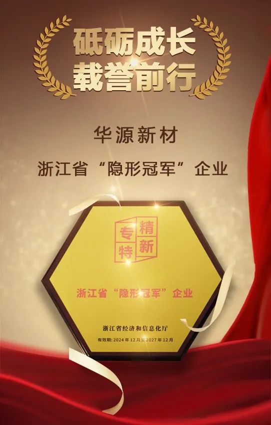 日前,在浙江省經濟和信息化廳公布的“浙江省隱形冠軍企業”名錄中,華源新材再度獲評這一殊榮,這無疑是對其多年來專注研發、創新發展的高度認可。早在2019年,華源新材就已首次入選該名錄,此次再度摘得桂冠,充分彰顯了其在行業細分領域的持續領跑實力,也凸顯了國家政策對華源新材發展的有力助推。