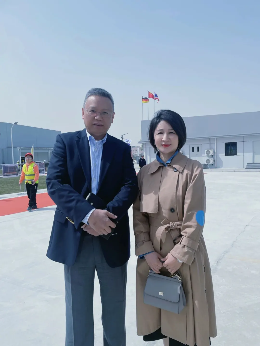 涂料采購網張馨元(右)參觀湛新嘉興工廠,并與湛新中國區全球副總裁鄒毅(左)合影