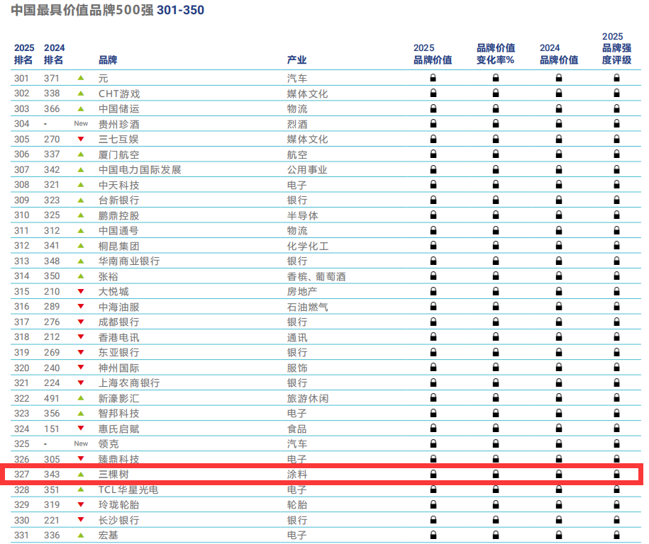 Brand Finance作為全球唯一獨(dú)立第三方品牌估值機(jī)構(gòu),其評(píng)估體系嚴(yán)格遵循國(guó)際會(huì)計(jì)準(zhǔn)則及ISO 10668(品牌估值)、ISO 20671(品牌評(píng)估)標(biāo)準(zhǔn),覆蓋財(cái)務(wù)表現(xiàn)、市場(chǎng)影響力、消費(fèi)者忠誠(chéng)度等核心維度。該報(bào)告從品牌價(jià)值、品牌強(qiáng)度及行業(yè)分布等多個(gè)維度,呈現(xiàn)了中國(guó)品牌在過(guò)去一年的發(fā)展態(tài)勢(shì)和市場(chǎng)格局的新變化。三棵樹(shù)多次入選榜單并成為行業(yè)唯一上榜品牌,印證了其品牌建設(shè)和發(fā)展的科學(xué)性與可持續(xù)性。
