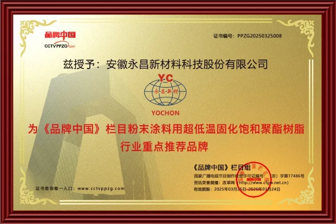 憑借強大自主研發能力,永昌新材料一路開拓、持續創新,始終堅持在高技術壁壘和市場快速變化中進行自我超越,堅定與客戶和行業共同成長,業務覆蓋面和行業影響力持續擴大,與浙江、廣東、山東、河北、湖北、四川、云南、福建等地的粉末涂料企業建立了長期穩定的合作關系。2023年和2024年在粉末涂料用超低溫固化飽和聚酯樹脂全國細分市場占有率分別達14.81%、 20.08 %。2025年,更是憑借其在相關細分領域的深度應用和廣泛創新實踐,榮膺“《品牌中國》欄目重點推薦品牌”授牌。能夠得到權威媒體的關注與認可,是永昌新材料長期堅持深耕產品質量的結果,也是對其持續堅持“低碳化、綠色化”轉型努力的極大肯定。