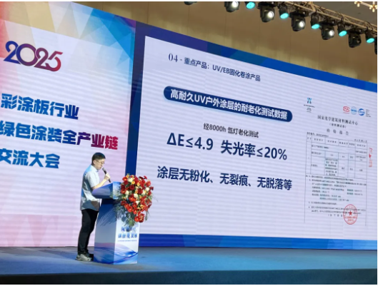尤為值得一提的是,UV/EB固化卷涂產品突破原有熱熔固化技術,實現了紫外光或電子束固化技術的創新,而這一技術創新也更匹配雙碳背景下的市場創新需求,推動彩涂板行業涂裝的高效、可持續發展,同時也攜手全產業鏈實現全面突圍。