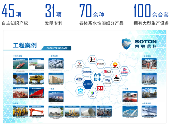 自主創(chuàng)新是索頓新材料的核心競爭力,企業(yè)持續(xù)加大研發(fā)投入,積極與國內(nèi)知名高校、科研院所及行業(yè)權(quán)威專家建立緊密合作關(guān)系。通過產(chǎn)學(xué)研深度融合,索頓新材料已獲得45項(xiàng)自主知識產(chǎn)權(quán),其中發(fā)明專利31項(xiàng),在技術(shù)創(chuàng)新領(lǐng)域一路領(lǐng)先。依托這些先進(jìn)的專利技術(shù),索頓新材料的水性防腐涂料性能和質(zhì)量不斷提升,即使在極端復(fù)雜的環(huán)境下,也能展現(xiàn)出卓越的防護(hù)效果,為客戶提供持久可靠的防腐解決方案。