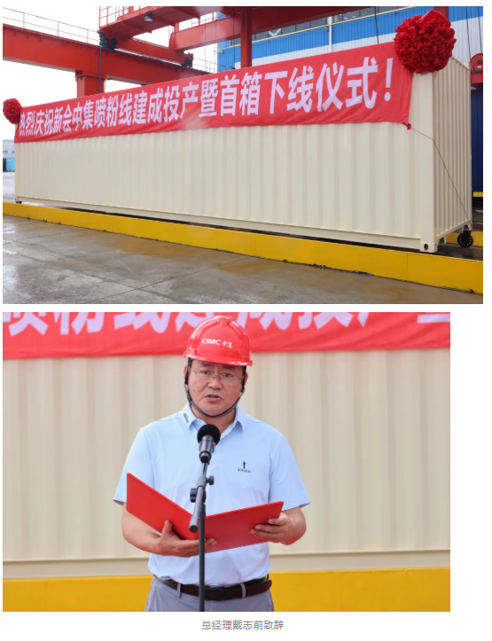 儀式伊始,總經理戴志前發表了致辭。他指出,新建噴粉線從藍圖到建成投產,標志著新會中集率先實現了集裝箱整箱粉末涂裝技術成果的規模化應用,通過全自動無人化涂裝和智能化管理,大幅降低污染排放,粉末涂裝工藝帶來的卓越產品性能,為53尺箱等“冠軍產品”的競爭力再添硬核支撐。