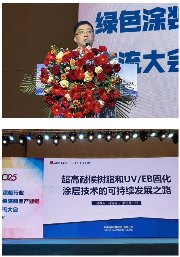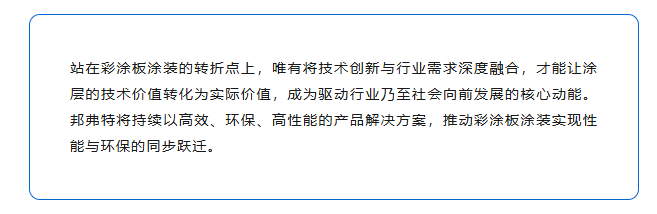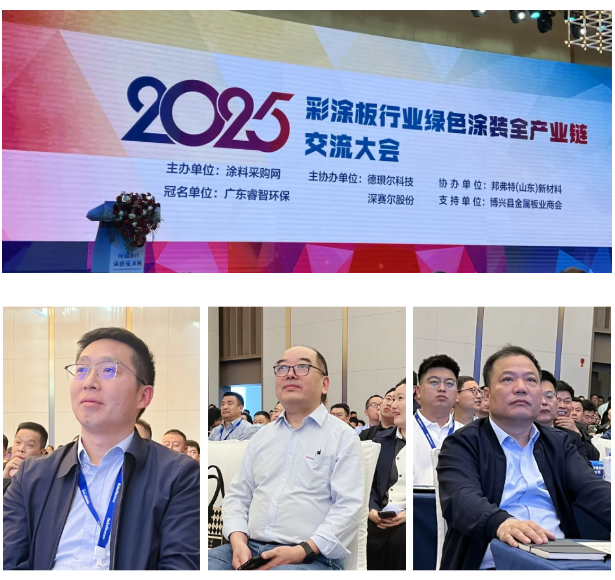 4月28日,由涂料采購網主辦、邦弗特(山東)新材料有限公司協辦的2025年彩涂板行業綠色涂裝全產業鏈交流大會在山東博興舉辦。邦弗特新材料股份有限公司董事長李新雄,公司董事孫中新,邦弗特(山東)新材料有限公司總經理郭永良,產品研發總監孫立巖等出席會議。此次大會以“向綠而行,謀新質發展”為主題,邦弗特聚焦彩涂板行業涂飾的可持續發展,展示了卷材涂層用全體系樹脂解決方案,與行業人士共話彩涂板未來。