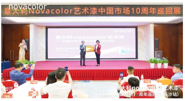 同時(shí),李會(huì)長(zhǎng)高度評(píng)價(jià)了Novacolor在中國(guó)高端藝術(shù)涂料市場(chǎng)的表現(xiàn)。他認(rèn)為,作為意大利頂級(jí)藝術(shù)涂料品牌,Novacolor進(jìn)入中國(guó)市場(chǎng)的十年,是高端進(jìn)口品牌本土化成功的典范。通過持續(xù)的技術(shù)培訓(xùn)與工藝創(chuàng)新,將意大利藝術(shù)涂裝的傳統(tǒng)精髓與中國(guó)市場(chǎng)需求完美融合,為行業(yè)樹立了“交付即口碑”的標(biāo)桿。