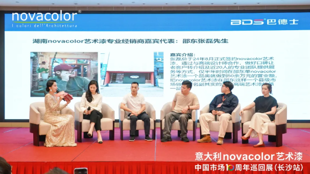 在會(huì)上,方博士深情地回顧了與Novacolor品牌共同成長(zhǎng)的歷程。過去十年,雙方攜手將意大利藝術(shù)涂料精髓與中國(guó)市場(chǎng)需求完美融合,成功打造了300+家終端門店,已進(jìn)駐第6空間、紅星美凱龍、居然之家等大型家居商場(chǎng),這一合作不僅實(shí)現(xiàn)了銷售額的持續(xù)增長(zhǎng),更推動(dòng)了中國(guó)藝術(shù)涂料市場(chǎng)的品質(zhì)升級(jí)。面對(duì)當(dāng)前行業(yè)格局,方博士指出藝術(shù)涂料市場(chǎng)正處于關(guān)鍵的轉(zhuǎn)型期:一方面,消費(fèi)變革催生了對(duì)高品質(zhì)、個(gè)性化產(chǎn)品的旺盛需求,環(huán)保標(biāo)準(zhǔn)的提升也推動(dòng)著行業(yè)技術(shù)革新;另一方面,市場(chǎng)競(jìng)爭(zhēng)日趨激烈,產(chǎn)品同質(zhì)化現(xiàn)象日益凸顯。