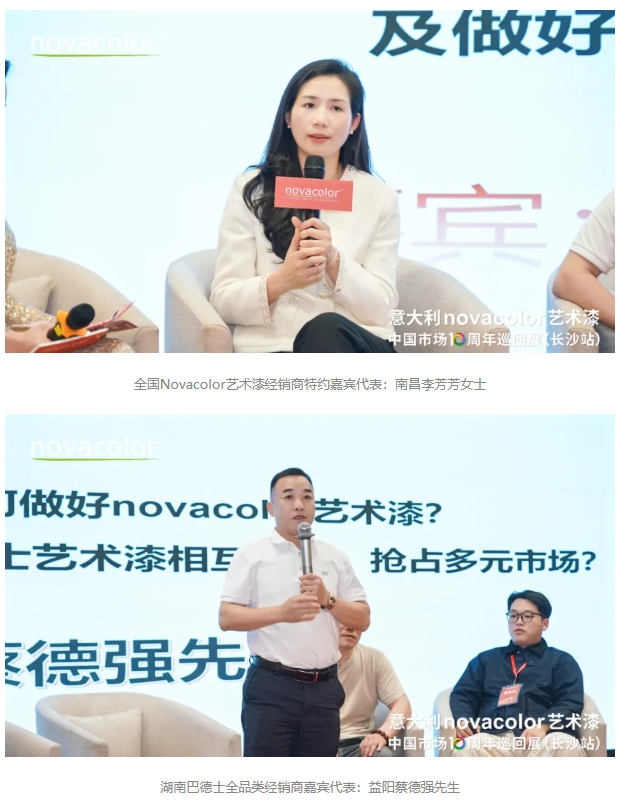 聚焦市場(chǎng)趨勢(shì)、渠道策略與實(shí)戰(zhàn)經(jīng)驗(yàn),本次巡回展特別邀請(qǐng)Novacolor汕頭經(jīng)銷商謝公子、Novacolor南昌經(jīng)銷商李芳芳,上臺(tái)分享區(qū)域市場(chǎng)的運(yùn)營(yíng)策略與成功案例。