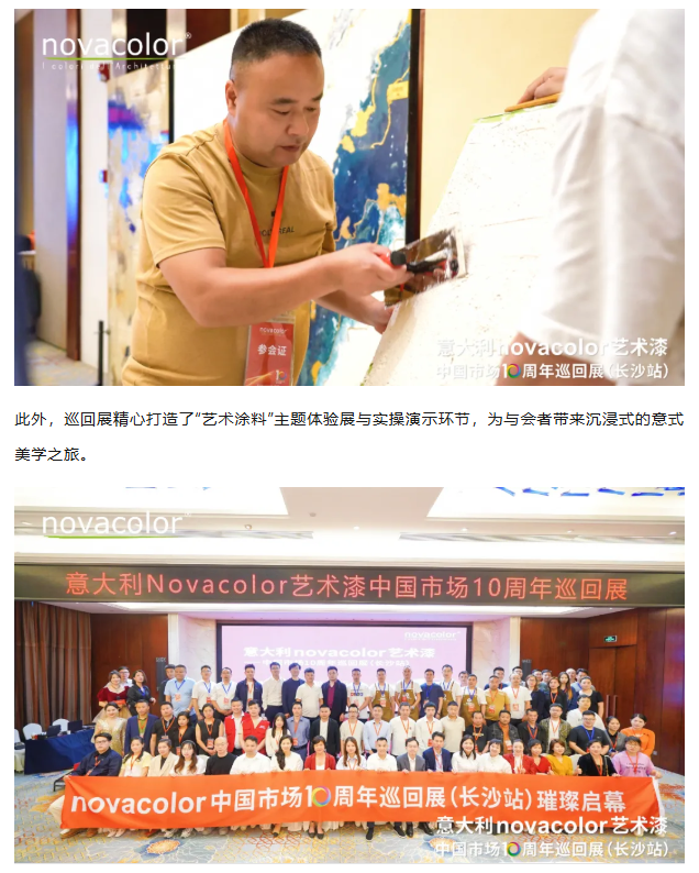 意大利Novacolor藝術(shù)漆·中國(guó)市場(chǎng)10周年巡回展(長(zhǎng)沙站)在熱烈的氛圍中圓滿落幕,但新征程才剛剛開始! 站在十年積淀之上,Novacolor將繼續(xù)秉持可持續(xù)發(fā)展理念,以創(chuàng)新科技為驅(qū)動(dòng),深耕中國(guó)市場(chǎng),攜手巴德士及全國(guó)合作伙伴,共同探索藝術(shù)涂料的無限可能,用色彩書寫空間美學(xué)的新篇章。 巡回展將在核心城市陸續(xù)舉辦,讓我們共同期待下一站的精彩~