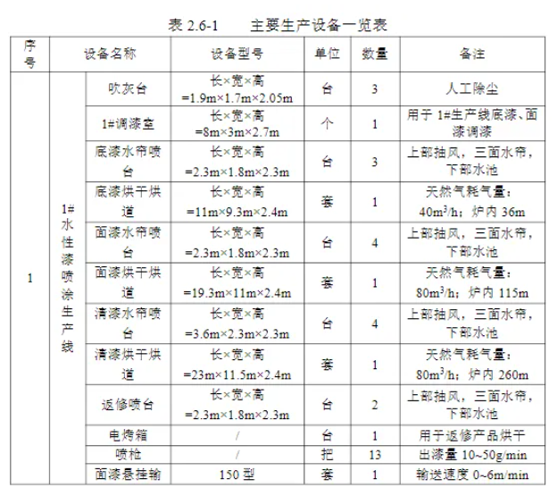 本項目3#水性漆噴涂線設置2個底漆水簾噴臺、2個面漆水簾噴臺、2 個清漆水簾噴臺,每個噴臺設置1把噴槍。