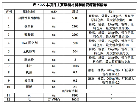 (1)稱量 按照一定的配比,在配料區將外購的熱固性聚酯樹脂、硫酸鋇、鈦白粉、固化劑、 顏料等原料進行稱量,批量生產情況下,大宗物料稱量時原輔料均未拆包,為袋裝稱量,僅部分小料需要先拆包后進行稱量,因此,該過程基本無粉塵產生。