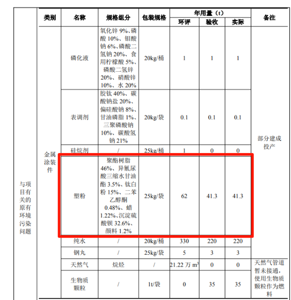 根據(jù)公開消息顯示,該項(xiàng)目年用塑粉41.3噸,配備1臺噴涂要機(jī)。