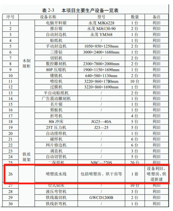 據公開消息顯示,該項目總投資2000萬元,其中環保投資104萬元。該項目配備1套噴塑流水線,包括噴塑房、烘干房等。年粉末涂料消耗量約為12.73噸