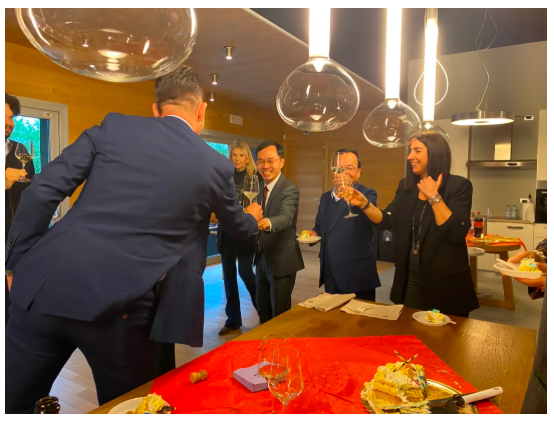 Novacolor總部董事長Mr. Pietro Geremia(第四代)、Novacolor總部前董事長Dr. Federico Geremia(第三代)、Novacolor總部前董事長夫人Mrs. Antonella Geremia(第三代)、Novacolor全球營銷總監Mr. Lapo Tattini、Novacolor全球市場總監Ms. Roberta Vecci、巴德士集團董事長方學平、巴德士創新中心總經理方立城、巴德士創新中心技術總監孔霞、巴德士藝術涂料效果交付中心部長郝浩浩參加慶典,共同見證這一里程碑時刻。