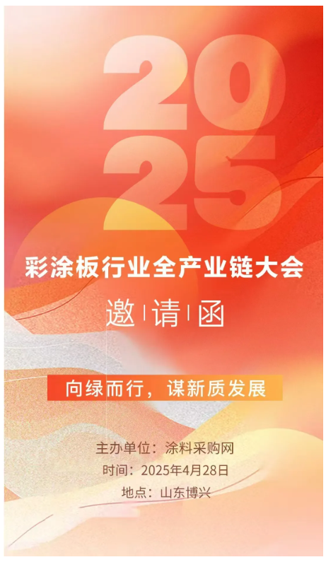 彩涂板行業中存在的諸多問題,嚴重影響了彩涂板行業的高質量發展,在目前市場嚴重內卷的大背景之下,涂料采購網將于2025年4月28日在中國金屬板材之鄉--山東博興,舉辦全國彩涂板行業首屆全產業鏈交流大會,本次大會旨在為行業各方搭建起一座溝通交流、攜手共尋破局之策的堅固橋梁,共同推動彩涂板行業高質量發展,帶動整個產業的抱團互助。