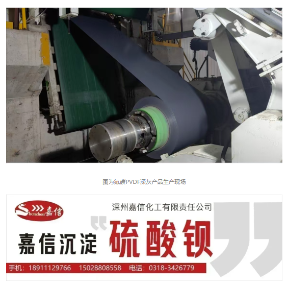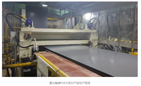 該產(chǎn)品是在TDX51D+AZ基板的基礎上涂敷一種PVDF深灰油漆,通過嚴格的質(zhì)量把關,以此來達到客戶的特殊要求。PVDF深灰油漆采用國際大廠阿克蘇諾貝爾公司的油漆。此彩涂板采用2/1的涂覆方式,在基板的上板面均勻涂敷一層20μm厚度的PVDF油漆。厚膜厚在保證產(chǎn)品滿足客戶特殊需求的基礎上,也為客戶長時間使用打下良好基礎,質(zhì)保30年。