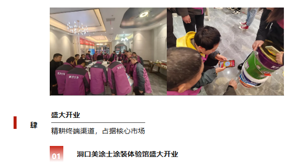 熱烈慶祝洞口美涂士涂裝體驗館盛大開業!開業期間門店現場人氣爆棚,系列鉅惠開業活動,吸引了眾多消費者前來參觀選購,館內展示的高品質涂料及專業涂裝服務贏得了客戶的一致好評,現場成交不斷。