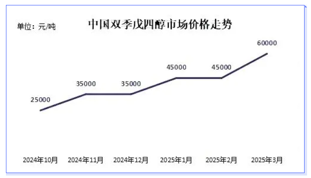 眼看進(jìn)入“金三銀四”的全年第一個小陽春,化工領(lǐng)域的市場雖未出現(xiàn)預(yù)期中的火爆,但價(jià)格的上漲卻是延續(xù)已久,其中雙季戊四醇的價(jià)格表現(xiàn)尤為亮眼。從去年10月至今,雙季戊四醇由2萬元/噸上漲至5.5萬元/噸,漲幅達(dá)175%。