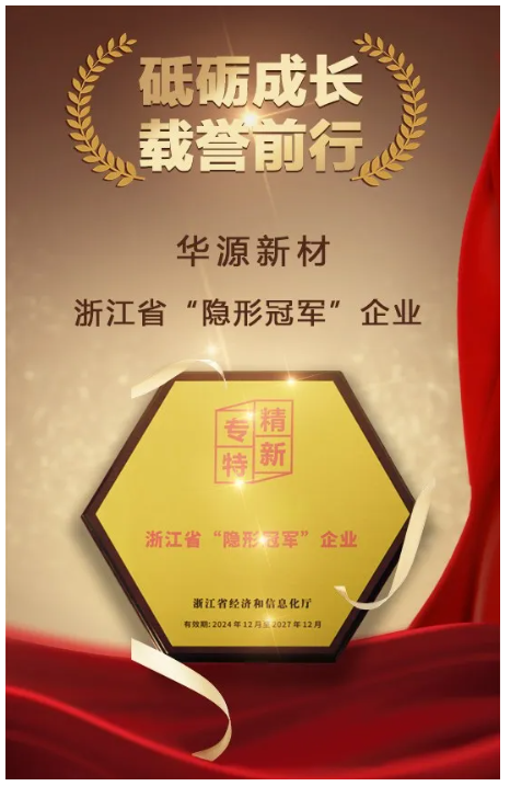 日前,在浙江省經濟和信息化廳公布的“浙江省隱形冠軍企業”名錄中,華源新材再度獲評這一殊榮,這無疑是對其多年來專注研發、創新發展的高度認可。早在2019年,華源新材就已首次入選該名錄,此次再度摘得桂冠,充分彰顯了其在行業細分領域的持續領跑實力,也凸顯了國家政策對華源新材發展的有力助推。