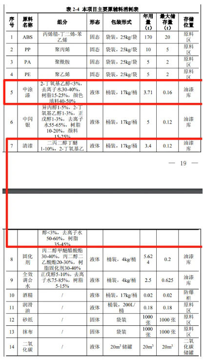 本項(xiàng)目噴漆工序使用中涂漆、中閃銀、清漆、固化劑、稀釋劑, 配比比例分別為中涂漆:固化劑:稀釋劑=100:16:16;中閃銀:固 化劑:全效調(diào)合水=60:40:30;清漆:固化劑=2:1.根據(jù)企業(yè)提供的 VOCs 檢測(cè)報(bào)告(見(jiàn)附件 14.VOCs 檢測(cè)報(bào)告按照《低揮發(fā)性有機(jī) 化合物含量涂料產(chǎn)品技術(shù)要求》(GB/T 38597-2020)要求測(cè)試方法 進(jìn)行檢測(cè),檢測(cè)結(jié)果不考慮水的稀釋比例)。