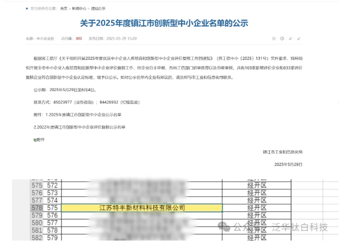 本次復核工作嚴格遵循“優(yōu)中選優(yōu)”原則,重點考察企業(yè)創(chuàng)新性、專業(yè)化及成長性。其中,江蘇特豐新材料科技有限公司通過市創(chuàng)新型中小企業(yè)復核,持續(xù)展現(xiàn)技術(shù)領(lǐng)先優(yōu)勢。特豐在此次核查周期新增申請專利10件、授權(quán)發(fā)明專利7件,其中特豐新材自主研發(fā)的聚碳酸酯工程塑料級鈦白粉DR-2688則突破鈦白粉與聚碳酸酯的界面相容技術(shù)瓶頸,顯著提升工程塑料的機械強度與耐熱性,在不同的細分應用領(lǐng)域取得了不俗的成績。公示名單顯示,新增企業(yè)覆蓋高端裝備、新材料、數(shù)字經(jīng)濟等領(lǐng)域,進一步壯大了全市優(yōu)質(zhì)中小企業(yè)梯隊。
