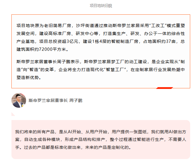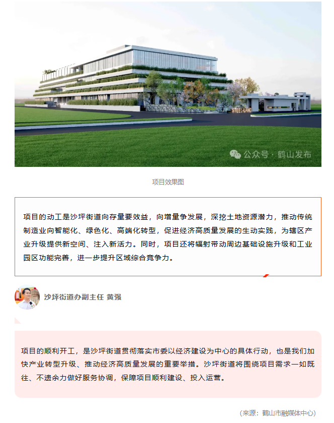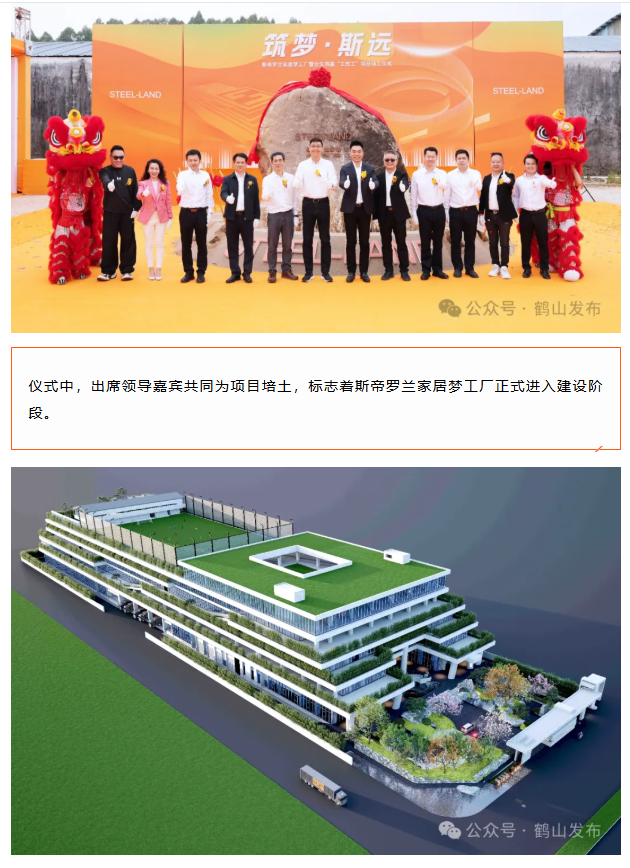 近日,斯帝羅蘭家居夢工廠暨合生鴻基“工改工”項目動工儀式在沙坪街道鎮南工業城舉行,該項目是沙坪街道重點推進的產業升級項目,將原有低效工業廠房升級為現代化產業廠房,讓土地資源“煥”新生。鶴山市領導梁士元、任文、儲涂應、梁沃威,沙坪街道、市直有關部門負責人等參加活動。