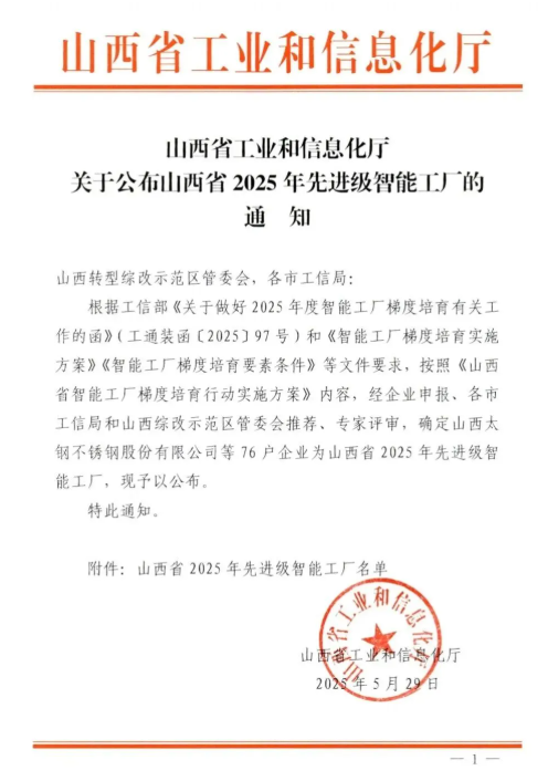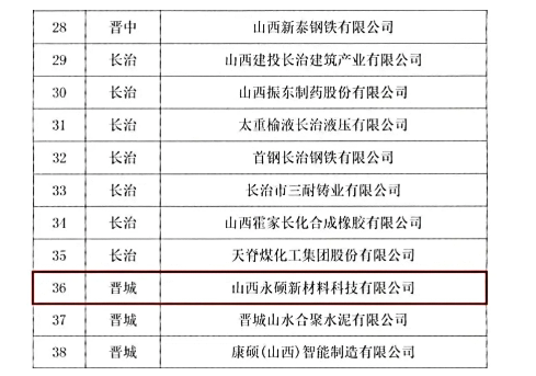 近日,山西省工業和信息化廳正式公布山西省2025年先進級智能工廠名單,集團旗下核心全資子公司——山西永碩新材料科技有限公司憑借卓越的智能制造實力與創新實踐成功上榜,為集團智能制造領域再添新光彩、注入新動能。