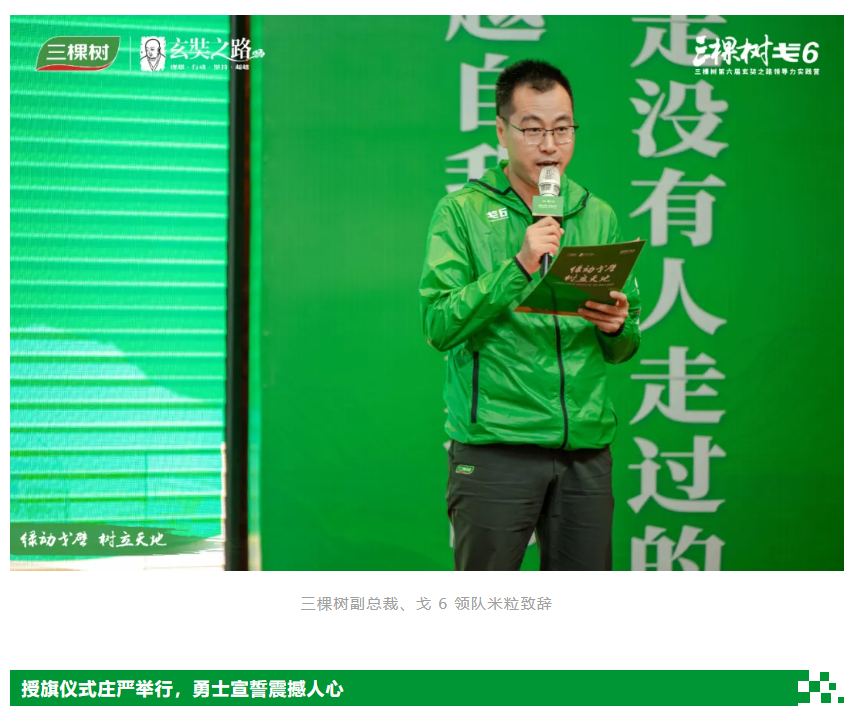 在戈6集結儀式上,三棵樹副總裁、戈6領隊米粒致辭強調,戈6是三棵樹企業文化與實踐的又一次深度融合。每一步腳印,都凝結著團隊的智慧與汗水。米粒以玄奘大師孤身穿越戈壁的堅定信念激勵團隊,如同在工作中協同搏擊,戈壁之上“全面協同”更是制勝密碼,將個人力量淬煉成無堅不摧的團隊合力!他勉勵全體戈壁勇士堅定信念、勇往直前,踏出堅實足跡,共同譜寫三棵樹的新篇章!