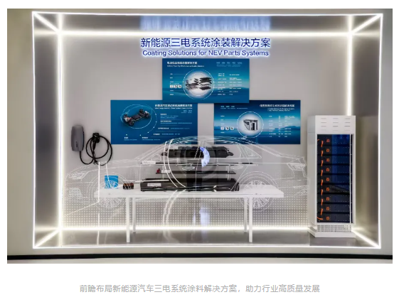 立邦自主研發的防火隔熱涂料,以被動防護機制,能在電池發生“熱失控”的狀態下,有效阻隔電池包的火勢蔓延,從而降低因火勢擴散而產生的爆炸風險。與此同時,立邦推出的UV絕緣涂料與油墨,通過固化能耗降低90%、生產效率提升3倍的技術突破,以低溫固化特性推動涂裝工藝的綠色轉型。值得關注的是,立邦正圍繞新能源產業全鏈路需求構建技術生態,除汽車零部件涂料以外,立邦也進一步將產品應用范圍拓展至電機與儲能電站,打造出“三電生態圈”。