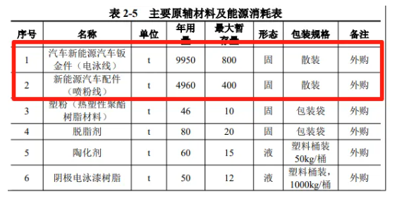 蕪湖華力金屬材料科技有限公司依托已租賃的蕪湖茂勝新材料有限責任公司2號廠房,面積約3417平方米,購置表面處理陶化線、電泳線、拋丸機、噴粉機等生產設備,建設“年產1.5萬噸新能源汽車零部件涂裝線建設項目”,項目建成后全廠將形成年產1萬噸電泳涂裝件、0.5萬噸噴粉件的生產能力,年產值4500萬元。