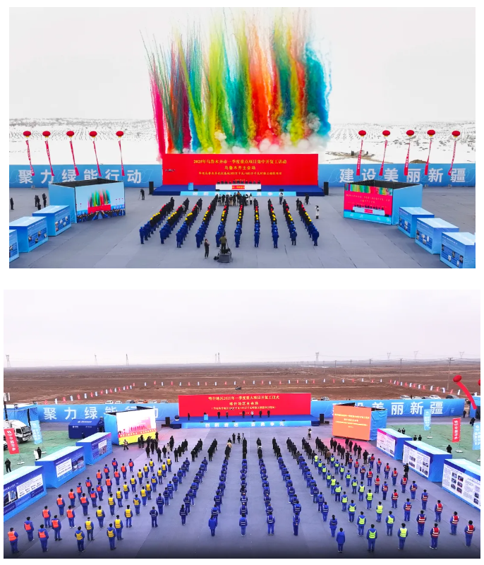 近日,2025年烏魯木齊市一季度重點項目集中開復工活動和2025年喀什地區一季度重點項目集中開復工活動分別在烏魯木齊米東區和喀什市阿克喀什鄉舉行。全國單體容量最大電化學獨立儲能電站——華電烏魯木齊光伏基地1GW/4GWh獨立儲能項目和華電喀什地區1GW/4GWh獨立儲能項目同時開工建設。