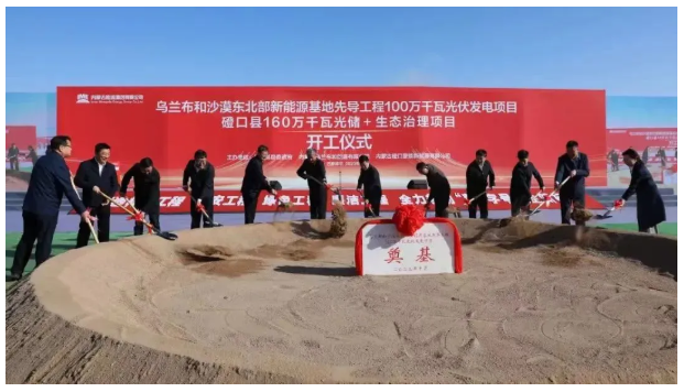 新能源總規模12GW,包括風電4GW、光伏8GW,由華能集團牽頭建設。該基地200萬千瓦光伏先導工程項目按照“板上發電、板下種植、板間養殖、治沙改土、鄉村振興、工業旅游”的“光伏+立體化新型產業” 模式設計建設,為構筑“三北” 綠色長城打造光伏治沙新樣板。
