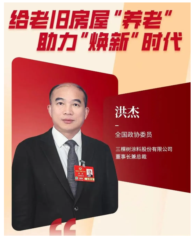 全國政協委員、三棵樹涂料股份有限公司董事長兼總裁洪杰在兩會建議:建議盡快出臺相關行政法規條例,明確對一定樓齡老舊房屋進行定期強制體檢和維修的制度安排。洪杰表示:“以舊換新舉措不僅可以擴大內需,并可以為更多的青年等人群提供就業機會。”