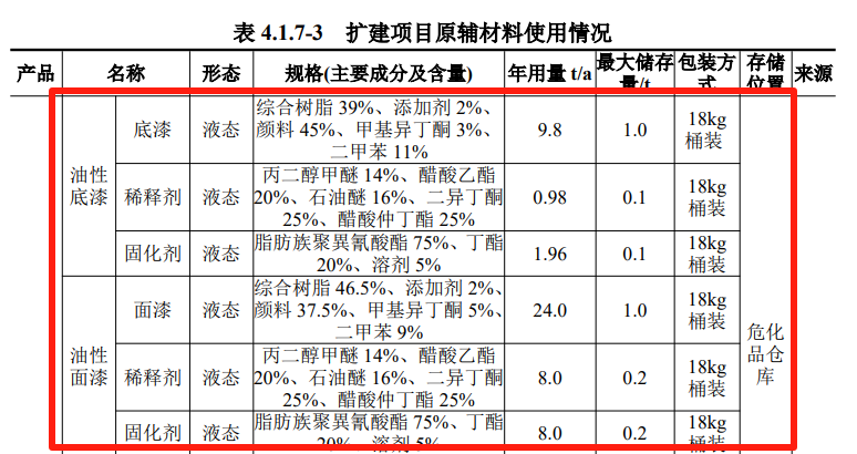 該擴建項目年使用涂料總計52.74噸,其中油性底漆12.74噸,油性面漆40噸。