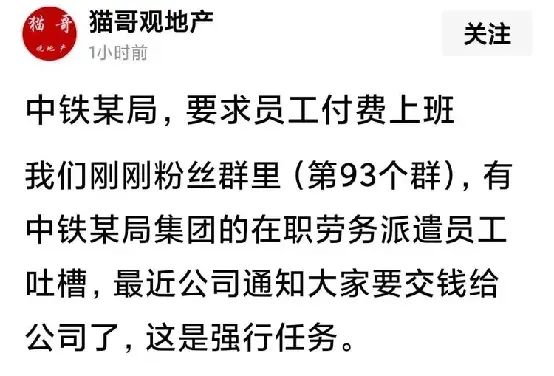 近日,中鐵某局一項(xiàng)要求員工繳納“項(xiàng)目股金”的規(guī)定引發(fā)廣泛關(guān)注。根據(jù)網(wǎng)傳信息,中鐵某局這一制度要求不同崗位的員工繳納數(shù)額不等的“項(xiàng)目股金”。項(xiàng)目經(jīng)理兼書記需繳納40萬,商務(wù)經(jīng)理和副總工為18萬,專職副副書記15萬,甚至勞務(wù)派遣員工也被要求繳納1.8萬。